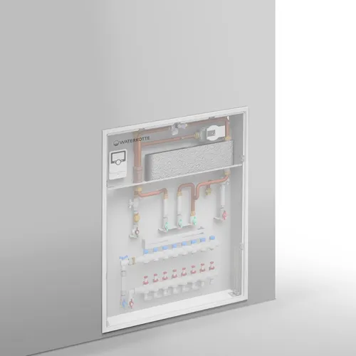 The WATERKOTTE Home Station combines hot water preparation and heating in one compact device. Simple and discreetly mounted in a wall recess, it offers variable performance classes and intuitive control. With flow rates from 13.7 to 28.7 l/min, it guarantees high drinking water hygiene and safety.